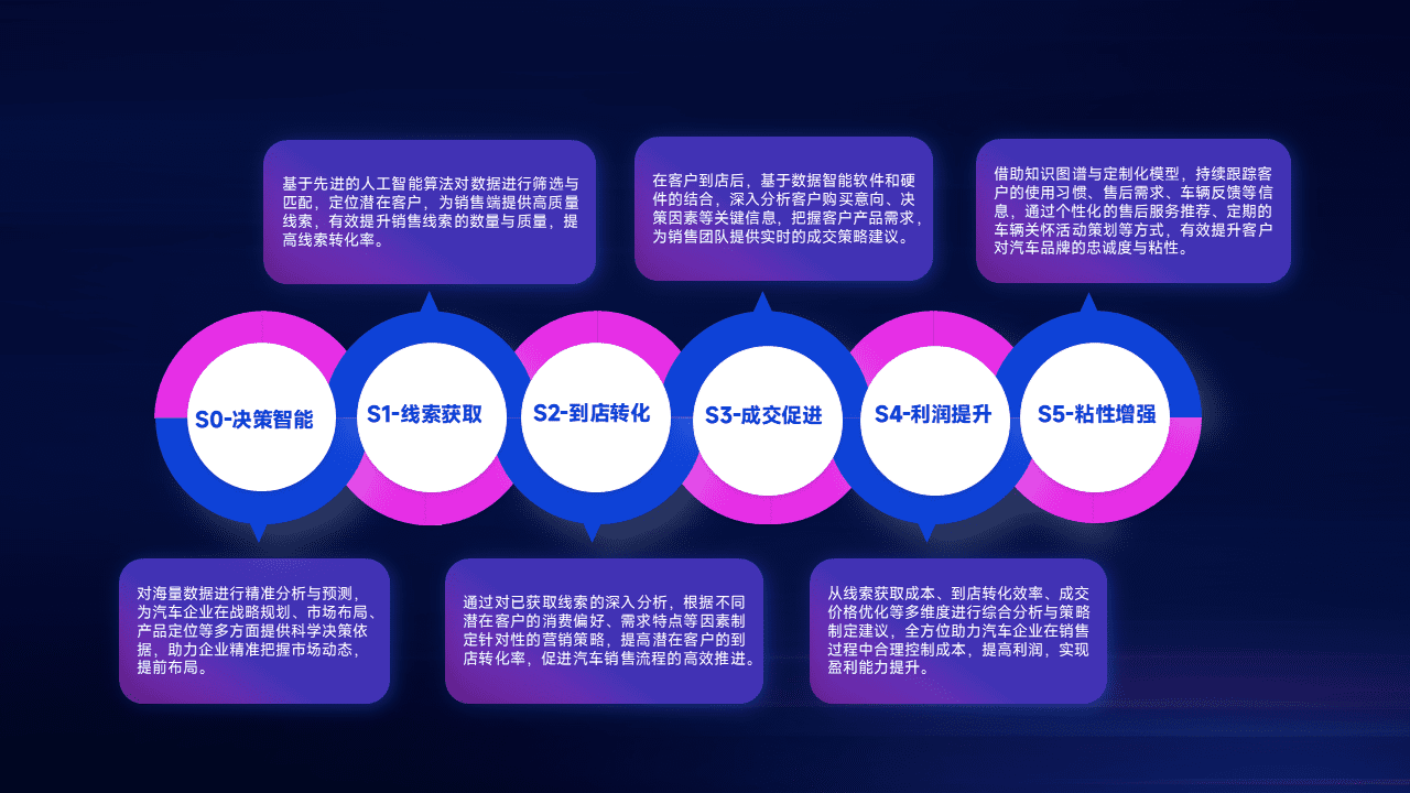 通过拓宽潜在客户来源、、优化线索分配并提高到店转化率,,,以增强销售效率。。。同时,,利用线索数据不断优化分析模型,,有效提升转化率,,,,扩大营销影响力。。。